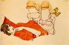 ...can be found in the works of Egon Schiele (Austrian artist 1890 - 1918) . His pictures may be a bit kinky (he was actually arrested for that) , but they're still very beautiful and sensitive. I love how the colors are used to make the pictures pop. And the lines! Lines like this are rarely seen. They are very vivid, a bit cocky even. Still, they describe the form in a fantastic way. A true source of inspiration if you're interested in "anatomy". (hardy har har...)